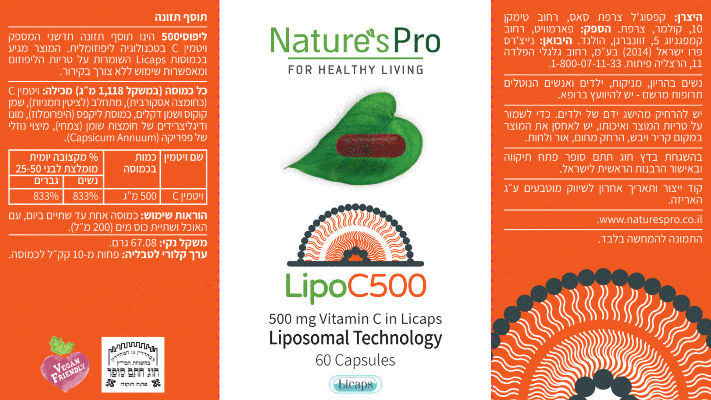 ליפוסי500– 500 מ”ג ויטמין C ליפוזומלי לספיגה מיטבית בכמוסות ליקפס פטנטיות למניעת התחמצנות.